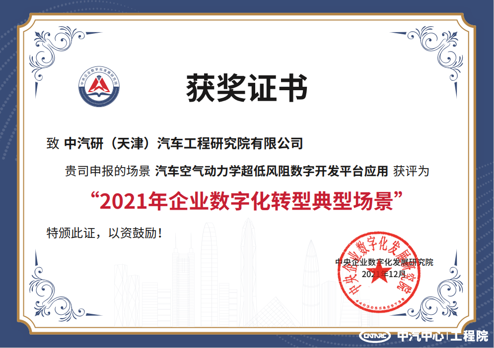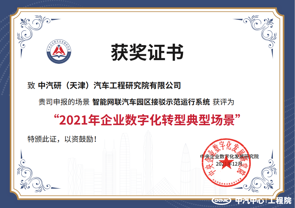 為貫徹落實黨中央、國務院關于加快數字化發展的決策部署,推進企業數字化轉型走深走實,中央企業數字化發展研究院(以下簡稱“研究院”),日前啟動了2021年企業數字化轉型場景征集工作,共評出103個典型場景,占申報總數的25%,其中工程院3項申報場景入選,分別為新型底盤開發部的“智能網聯汽車園區接駁示范運行系統”、“基于5G+V2X的礦區自動駕駛”、風洞中心的“汽車空氣動力學超低風阻數字開發平臺應用”。