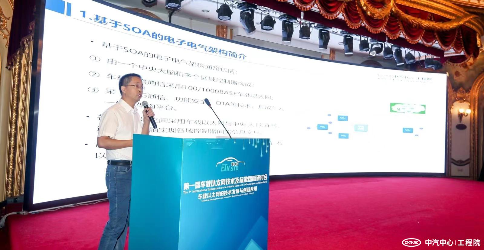 2022年7月27-28日由全國汽車標準化技術委員會(SAC/TC114)與中國汽車技術研究中心有限公司共同主辦的第一屆車載以太網技術及標準國際研討會在煙臺順利召開。中汽研(天津)汽車工程研究院有限公司(以下簡稱“中汽中心工程院”)電子電控部技術總監韓光省發表了“面向SOA的車載以太網實車測試技術”主題演講,獲得了國內外整車及零部件企業、科研機構、測試服務機構、車載以太網芯片廠商專家們的熱烈關注和一致好評。