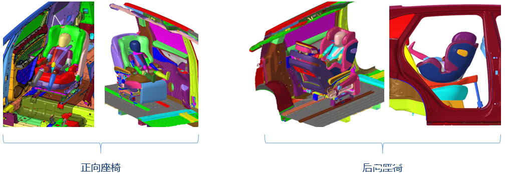 正碰和側面柱碰相容性問題,總結規律,完善兒童座椅選型庫,根據具體車型碰撞響應情況,合理匹配符合兩種工況相容特點的兒童座椅。
