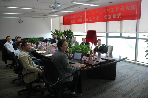 2016年4月28日,中國汽車技術(shù)研究中心汽車工程研究院(以下簡稱工程院)與知豆電動車有限公司成立“聯(lián)合工程技術(shù)開發(fā)中心”揭牌儀式在天津舉行。出席揭牌儀式的領(lǐng)導(dǎo)有知豆公司總裁鮑文光、知豆公司總裁助理張新建、知豆公司技術(shù)副總樊曉滸、知豆技術(shù)集成中心總監(jiān)何志剛、天津市東麗開發(fā)區(qū)管委會主任李光華及工程院院長高繼東、副院長龔進(jìn)峰、副院長馬杰、院總工程師李洪亮、院總工程師兼第五開發(fā)部主任戎輝、院副總工程師兼運(yùn)營管理部主任胡濟(jì)民、院副總工程師兼第一開發(fā)部主任謝書港、院副總工程師兼第三開發(fā)部主任王新宇、院副總工程師兼第四開發(fā)部主任劉雙喜。