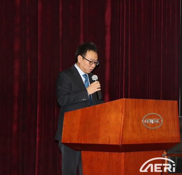 (中汽中心工程院副院長黨委委員胡濟民發表開幕致辭)