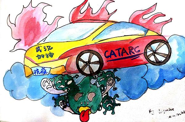 畫作以汽車象征“CATARC”全體員工,疫情當前,全員戰“疫”,展現央企擔當。