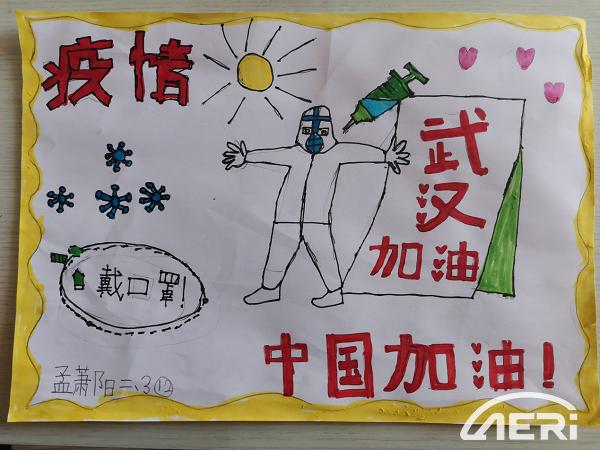 孟蕭陽,小學二年級,系我院員工孟春江之子。創作此畫的目的是向守護我們的白衣天使致敬,希望國家早日戰勝疫情,打敗病毒。