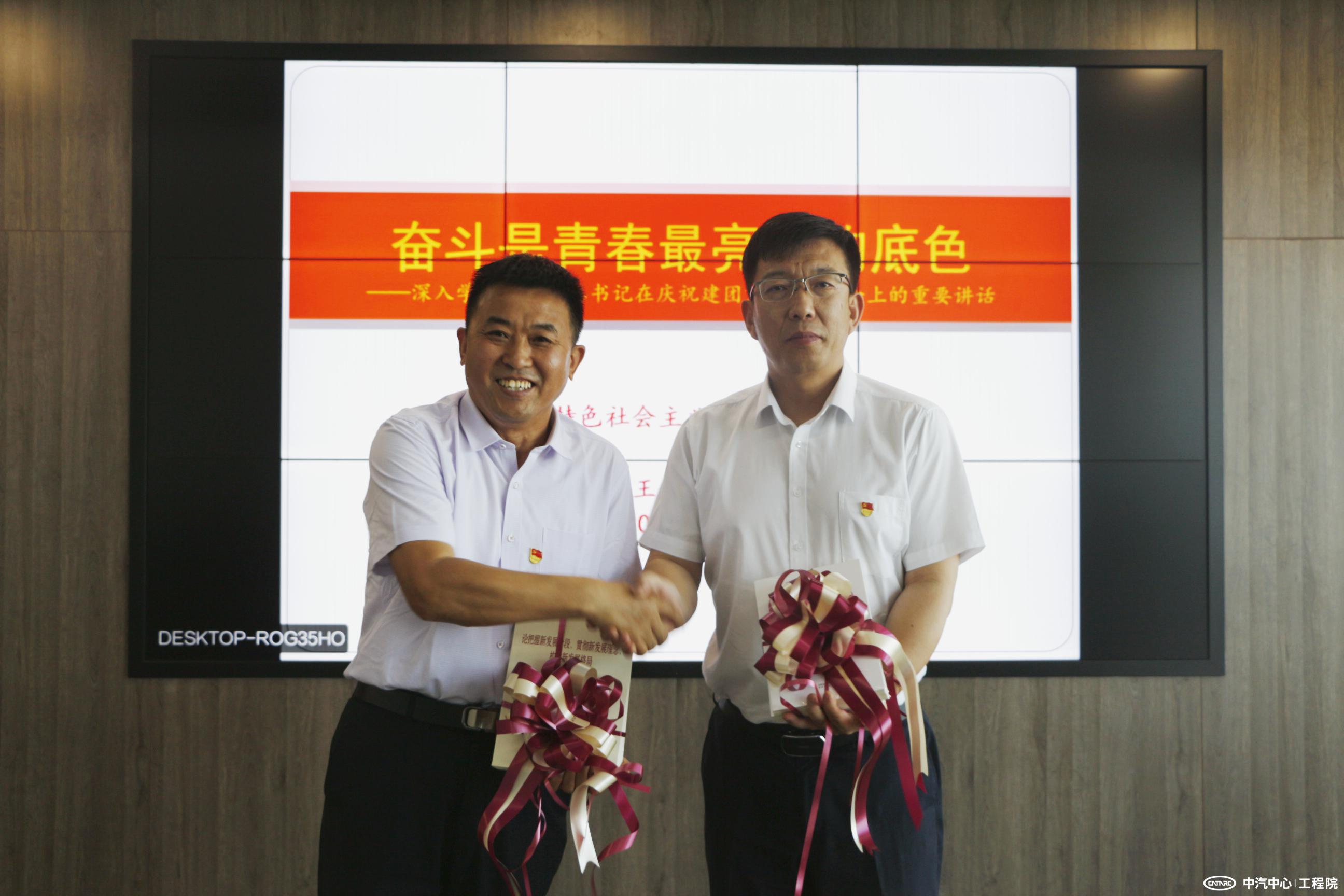 工程院黨委書記、總經理王建海代表工程院黨委向王偉凱博士贈送了理論學習書籍,王偉凱向理論學習中心組成員回贈了《疫情里讀懂中國》一書。